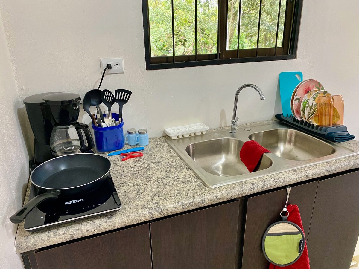 Meşədəki kiçik kabinəmiz hətta çarpayının rahatlığından, quşların və tənbəllərin olduğu geniş pəncərələrdən, kiçik mətbəxdən və layiqli istirahət üçün böyük çarpayıdan əlavə, Tenorio Vulkan Milli Parkından və gözəl səma çayından cəmi 20 dəqiqəlik məsafədə olmaqla unikal mənzərələr təklif edir.