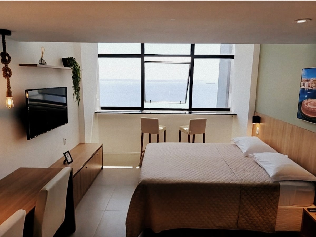 Super Ev Sahibi! Salyanın ən ucqar ünvanı olan Vitória məhəlləsində, Alive binasında butik studiyası. Todos os Santos Körfəzinin sonsuz hovuzundan və valehedici mənzərələrindən zövq alın. Müasir və gözəl bəzədilmiş, rahat 150-179 sm-lik çarpayı, kondisioner, 600 Mbit/s Wi-Fi işləmək və ya axın və pulsuz parkinq üçün mükəmməldir. Porto da Barra çimərliyindən cəmi 1,7 km məsafədə, kafe, restoran və supermarketə 60 m məsafədə yerləşir. Rahatlıq, zəriflik və bir yerdə imtiyazlı mövqe.