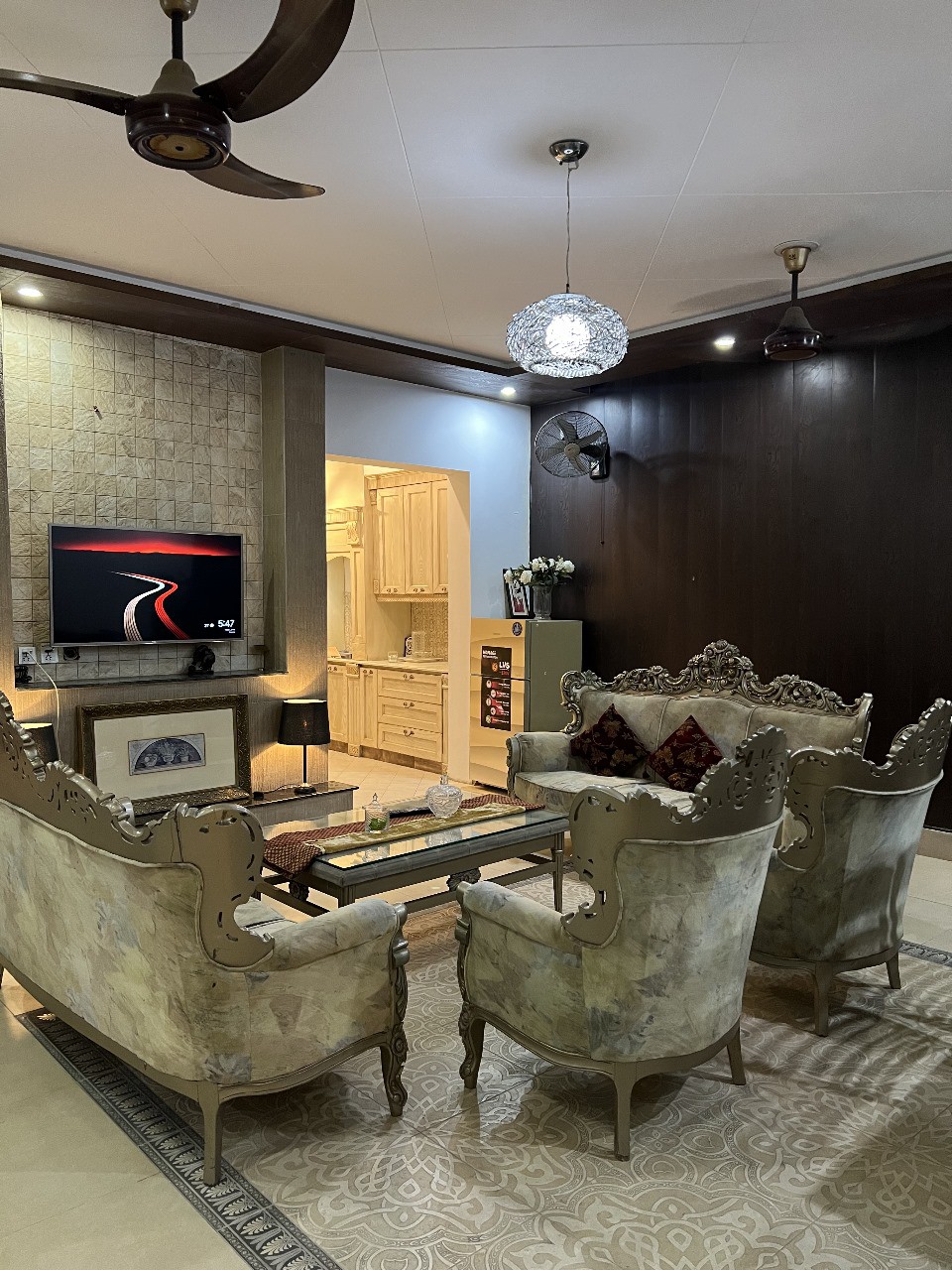 Ev mərkəzdə Lahorda yerləşir. Burada qarderob və hamam otaqları olan üç yataq otağı, böyük salon və böyük mətbəx, tv və müvafiq dəmir yer var. Avtomatik + açar girişi var ki, siz də seçə bilərsiniz. Həmçinin 24/7 pulsuz mühafizəçi/köməkçi əldə edirsiniz. Hər üç yataq otağının kondisioneri qiymətə daxildir. Müdafiə (DHA)/Paketlər Mərkəzi: 10-15 dəq Vapda Şəhəri/Emporium: 5-7 dəqiqə Gulberg: 5-10mins Hava limanı: maksimum 20 dəq Daewoo Avtobus Terminalı: 10-15mins Model Town: 5-10mins