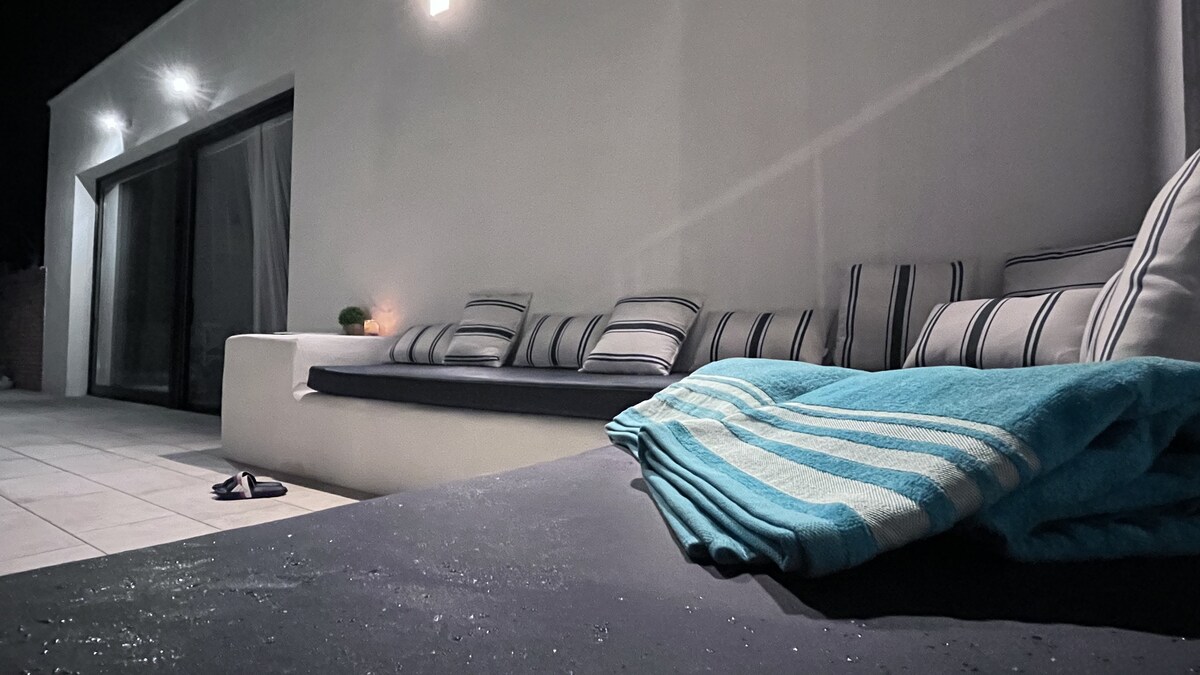 Çox yaxşı yeri olan villa, yeni mebel, üç yataq otağı, biri ikinəfərlik, digəri isə qarderoblu ikinəfərlikdir. Amerika mətbəxi ilə ünsiyyət quran yemək otağı. Vanna vannası olan tam vanna otağı Bağ mebeli və üst terrası olan böyük terras. Mebel və barbekü ilə təchiz edilmiş, bütün hasarlanmış, ev heyvanları və uşaqlar üçün ideal olan solariumlu ayrıca hovuz. Pulsuz WiFi. Əlavələr yoxdur. Çöldə və ya qarajda ayrıca parkinq.