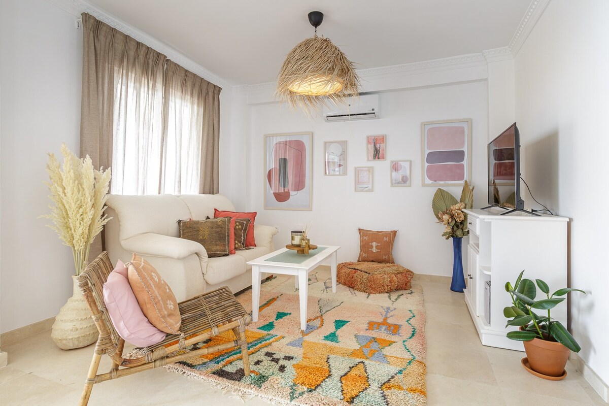 Despierta con las mejores vistas al mar desde este increíble apartamento en La Costa del Sol. Disfruta de un zumo de naranja con el Mediterraneo de fondo. Relájate en sus cómodos sofás mientras lees un libro o simplemente disfrutas del mar. Decorado con un estilo ecléctico. El apartamento es muy luminoso, con la mejor orientación posible (Sur-Este). Ubicado en la playa de Bajondillo y Calle San Miguel, una de las mejores zonas de Torremolinos.