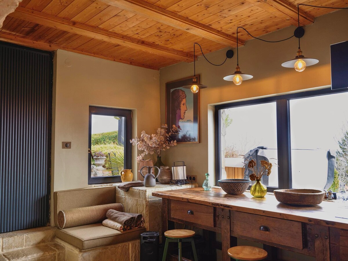 A truly special place just an hour from Budapest. A newly built "old house" with fully opening doors onto the huge patio overlooking Lake Balaton’s biggest bay. See wicked storms approaching over the lake, the always changing clouds and colours of the sky. Welcoming anyone who values this unique experience and the warm design of the house. Get away to the studio if you need to work while still enjoying this special atmosphere. Winter is also very special with breathtaking sunsets and a hottub.