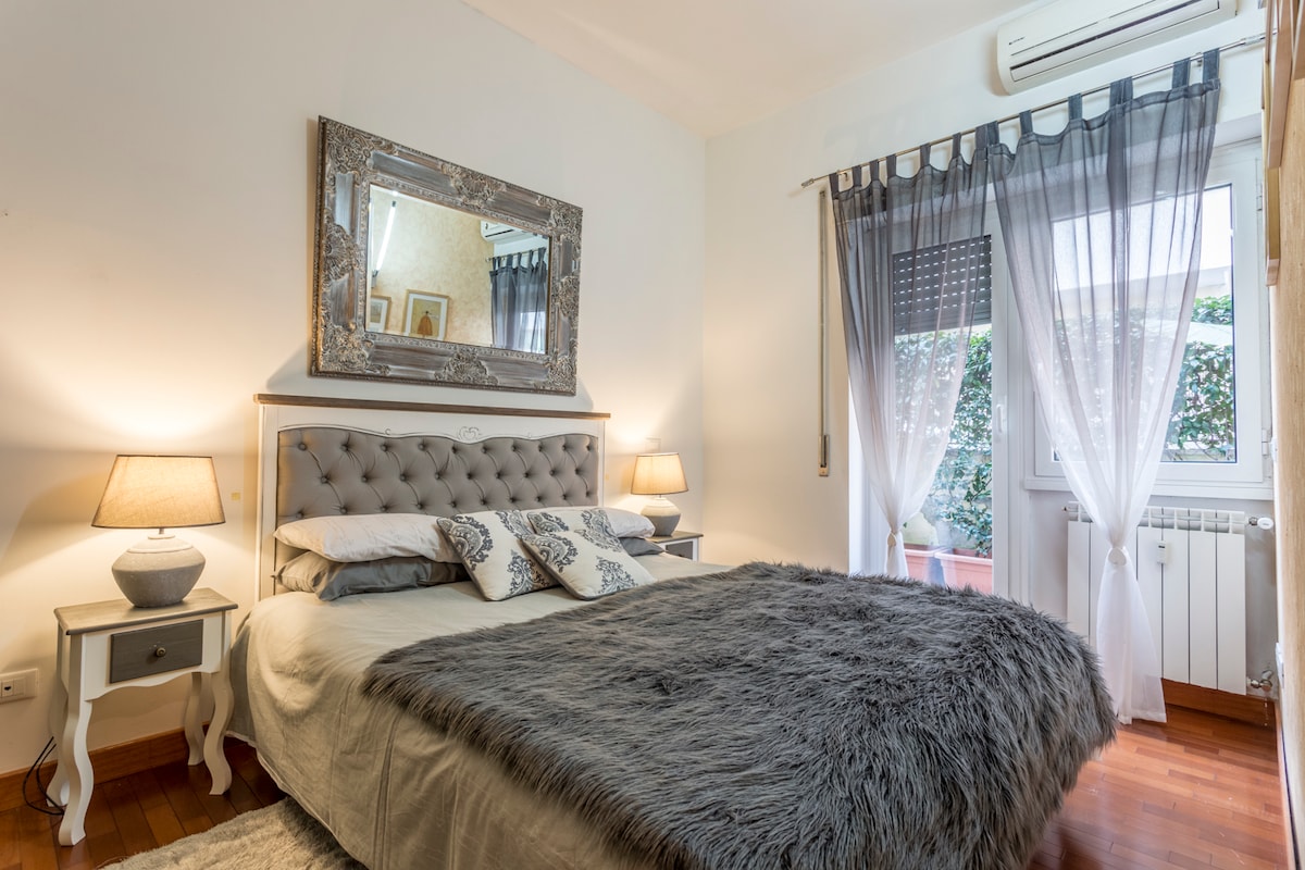 Appartamento confortevole in strada privata e silenziosa alle porte del Vaticano. Affaccio su giardino interno condominiale, cucina in muratura dotata di tutti i comfort. Ampio bagno curato con pregiato marmo Salomè e sanitari sospesi. Camera matrimoniale luminosa, con testiera in legno fatta a mano e fiore di specchi sul soffitto. L'appartamento è perfettamente comodo per 2 persone, utilizzando il divano letto la capienza può arrivare fino a 4 e in aggiunta anche un letto singolo.