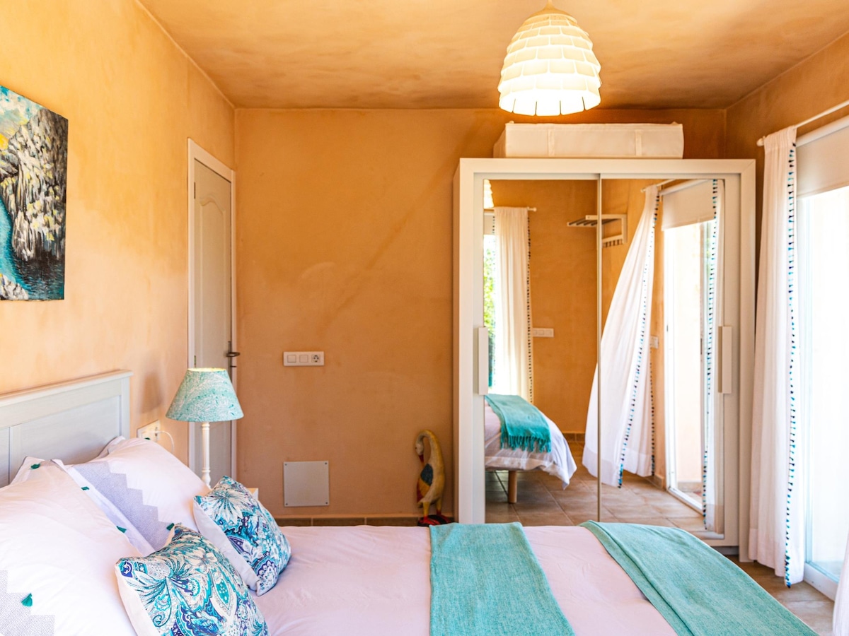 Bungalow "de luxe" in residential complex with direct access to the beach of Cala Gran. Less than 5 minutes walk to leisure areas and restaurants. Perfectly equipped and decorated with love. Wifi. air conditioner. Free parking on the street. Tourist License A / 588 Check in from 3 p.m. Check out 10:30 We are energetically sustainable, we have contracted electrical service companies that only use solar panels to obtain energy, in this way we help the planet.