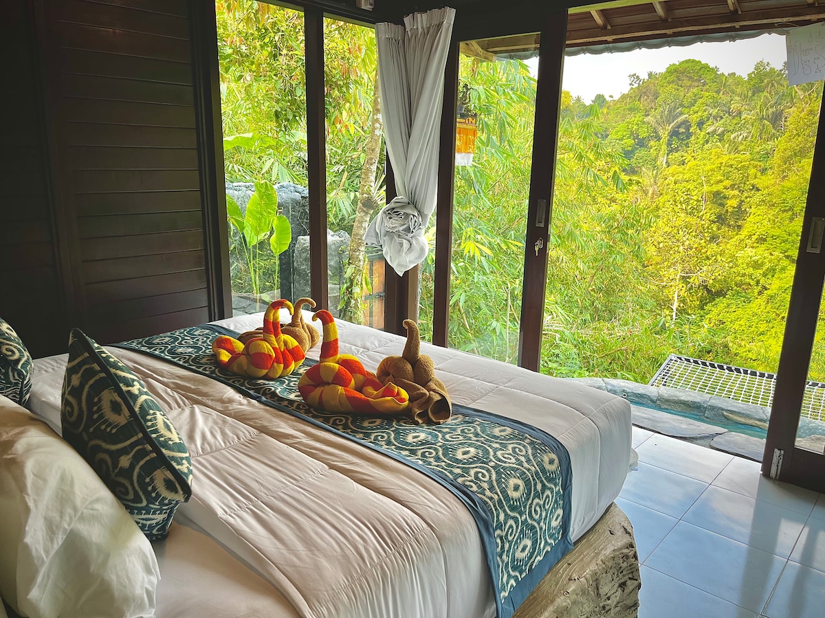 Dəniz kənarında yamyaşıl tənha vadidə yerləşən iki eksklüziv banqalodan birində qonaqlayın. Hər səhər valehedici mənzərəsi olan pulsuz tam səhər yeməyinizdən zövq alın. Təbiət mənzərəli lüks açıq hava vanna otağı və eyvanı olan təbii sərin banqaloda rahat yatın. Möhtəşəm kista hovuzuna baxan, üstüörtülü salonu olan açıq rustik məkanda nahar edərkən (və ya yemək bişirərkən) mükəmməl Bali havasına qənaət edin. Vadidən vulkana və okeana qədər heyrətamiz kista mənzərələrinə heyran olun.