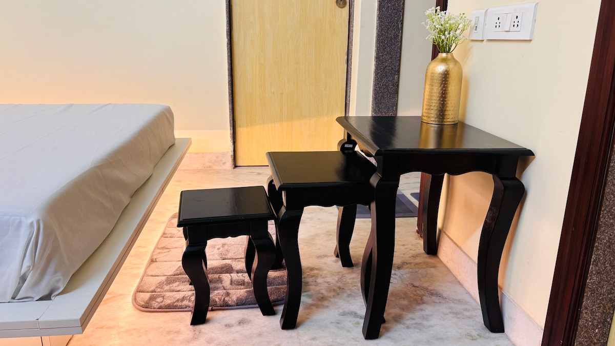 Minimalizm və hərarətin mükəmməl qarışığı olan Japandi-inspired 1BHK-ımıza xoş gəlmisiniz. Geniş, açıq havada yerləşən bu mənzildə zərif taxta ştrixlər, yumşaq işıqlandırma və rahat istirahət üçün rahat mebellər var. Yaxşı təchiz olunmuş mətbəxdən, dəbli yataq otağından və rahat balkondan zövq alın. Birbaşa çöldə verandamız və terrasdan yuxarıya çıxışımız var. Mərkəzdə, avtobus dayanacağı və hava limanı 2 km məsafədə yerləşir. Bu, ailələr, turistlər və ya iş qonaqlamaları üçün mükəmməldir. QEYD: Ev qaydalarını oxuyun