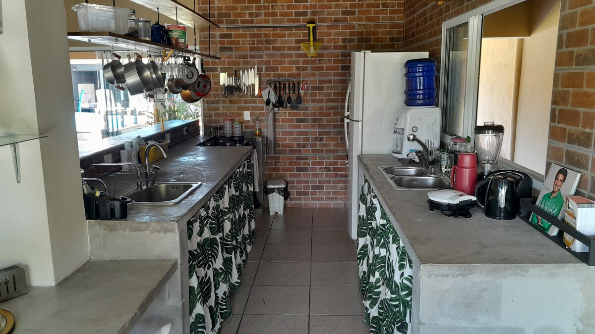 İki (2) nəfər üçün ideal olan və dörd (4) nəfərə qədər qonaq yerləşdirə bilən bu gözəl STUDİYADA bunlar var: * Barbekü ilə Baqada; * Geyim Dolabı; * İki nəfərlik çarpayı + döşək; * Dois Puffs və Colchonete; * Paltaryuyan maşın; * Panel və Smart TV ilə Rack; * Wi-fi daxildir; * Fogão; * Mikrodalğalı soba; * Kondisioner; * Saç feni; * Paltar Ütüsü; * Blender; * Assadeira; * Elektrik çaydan *Masa 2 nəfər üçün bağlı, 4 nəfər üçün açıqdır.