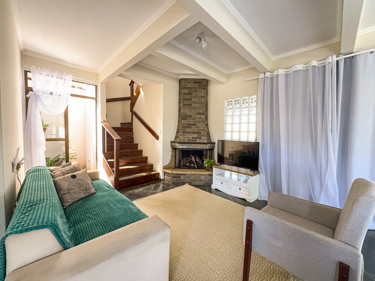 Casa Sobrado böyük qonaq otağı, 65 düymlük çoxkanallı TV, Wi-Fi internet, yemək otağı + 02 soyuducu, soba, mikrodalğalı soba və adi mətbəx ləvazimatları olan mətbəx, dəstəkli stullar, 14 kiloqramlıq paltar yuyan maşın, üst mərtəbədə 02 lüks otaq + 02 qts, fds ilə. TV smart Netflix və s. ilə süita Kond. veranda, şkaf, şüşə qutu. Hovuz, barbekü üçün soyunma sahəsi. İkinci mətbəx təchiz olunub. Churrasqueira, solarium, 3 avtomobil üçün qaraj.