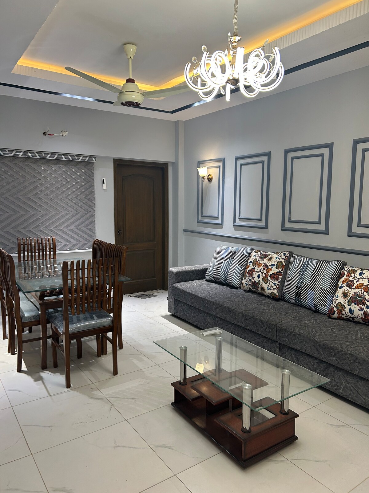 Kəraçidə tam məxfilik və rahatlıqla müasir 2 yataq otaqlı mənzildə qonaqlayın. ✅ Rahat çarpayıları olan 2 kondisionerli yataq otağı ✅ Sürətli Wi-Fi, 24/7 elektrik enerjisi ehtiyatı ✅ Tam təchiz olunmuş mətbəx və yemək sahəsi ✅ Pulsuz, təhlükəsiz yol kənarında parkinq ✅ Ailə yönümlü, təhlükəsiz məhəllə Mağazalar, kafelər və nəqliyyat bağlantılarına yaxın yerləşir. Ailələr, qruplar və ya işgüzar səyahətçilər üçün mükəmməldir. Qeyd: Evli olmadıqları halda, əks cinslə birgə yaşamağa icazə verilmir.