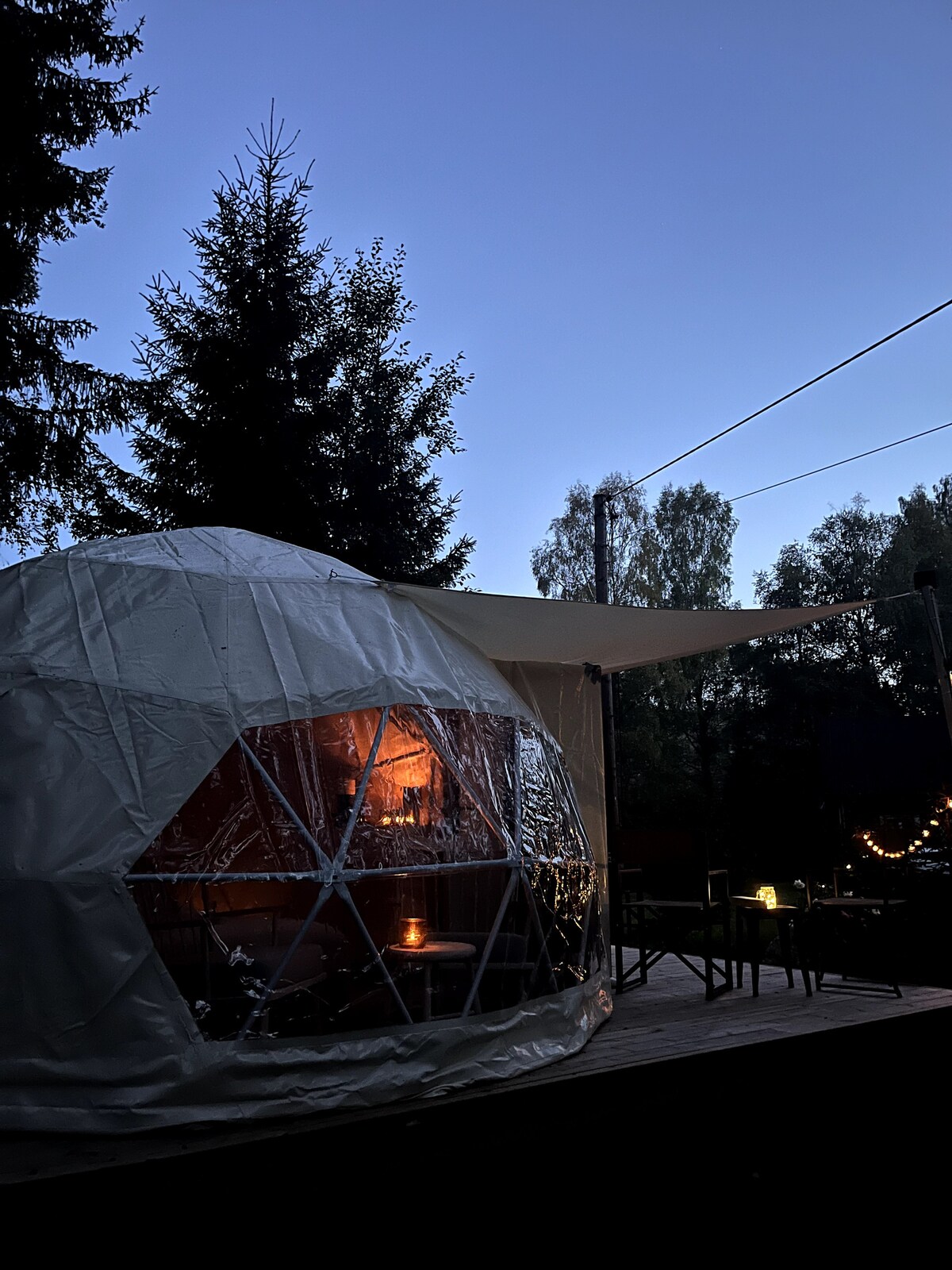 Bog yaxınlığında saunası olan böyük günbəz çadırı!