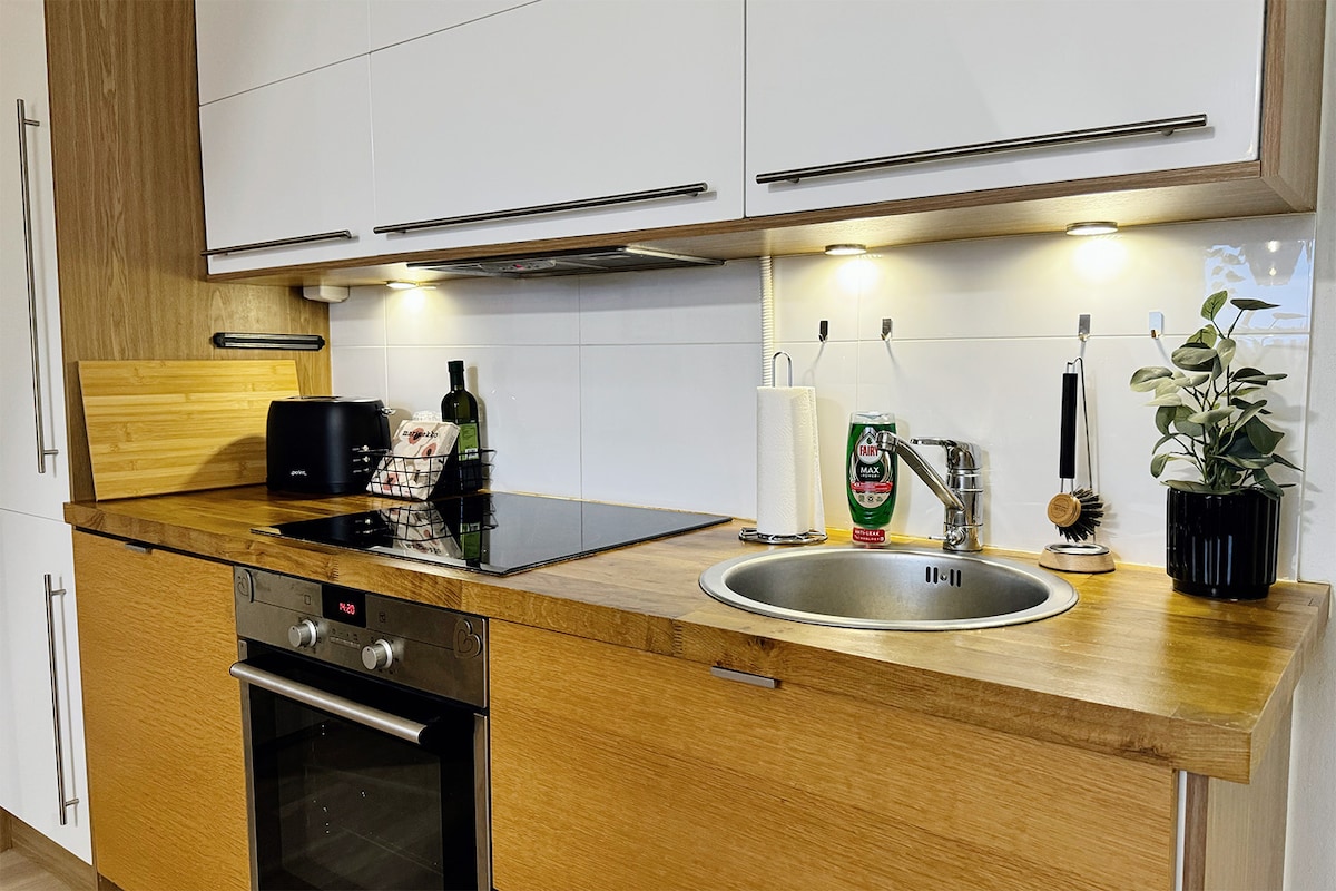 Apartament na 16. piętrze w samym centrum Szczecina to idealne miejsce na relaks. Pokój wyposażony jest w łóżko king size, telewizor i kominek elektryczny, który tworzy przytulny klimat. Aneks kuchenny posiada piekarnik i płytę indukcyjną, a łazienka – nowoczesny prysznic. Goście mogą korzystać z tarasu widokowego na 27. piętrze oraz strefy wellness z basenem, jacuzzi i dwiema saunami, zapewniającymi pełen komfort i odprężenie.