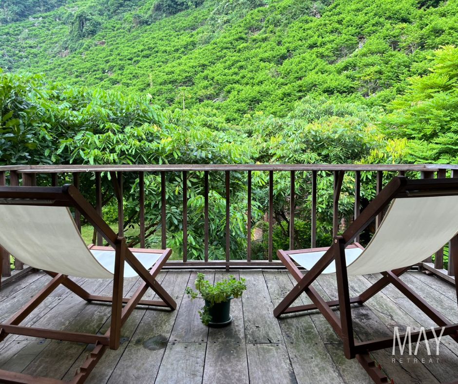 "Təbiət qoynunda 2000m2 əmlak üzərində qurulmuş bütöv taxta ev təbii göl və əhəngdaşı dağlarının heyrətamiz mənzərələrini təklif edir. Burada eyvanları, kommunal yaşayış sahəsi və birinci mərtəbədə yemək məkanı olan 4 ayrı yataq otağı var. May Retreat Noi Bai Hava Limanından 2 saatlıq məsafədədir və tanınmış Huu Lung əhəngdaşı dağa dırmanma yerindən cəmi 1 km məsafədədir. Burada maksimum 16 nəfər qala bilər (əlavə haqlarla) ".