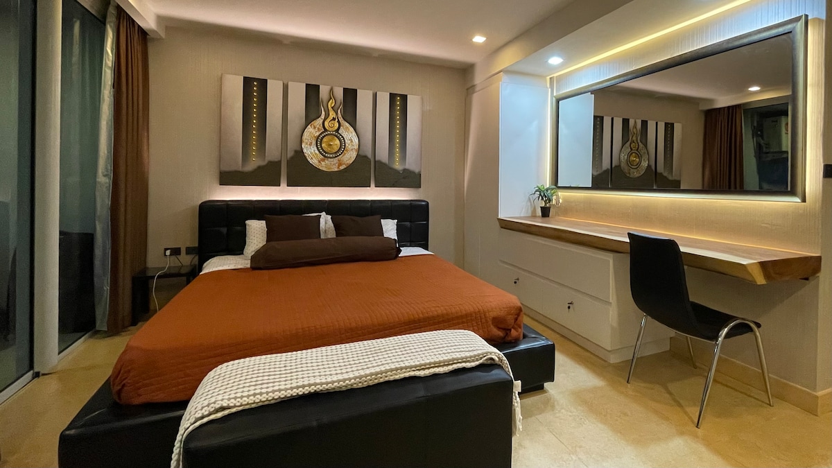 Ortalama reytinq 5/5, 7 rəyRiviera Jomtien 48sqm bir yataq otaqlı heyrətamiz dəniz mənzərəsi