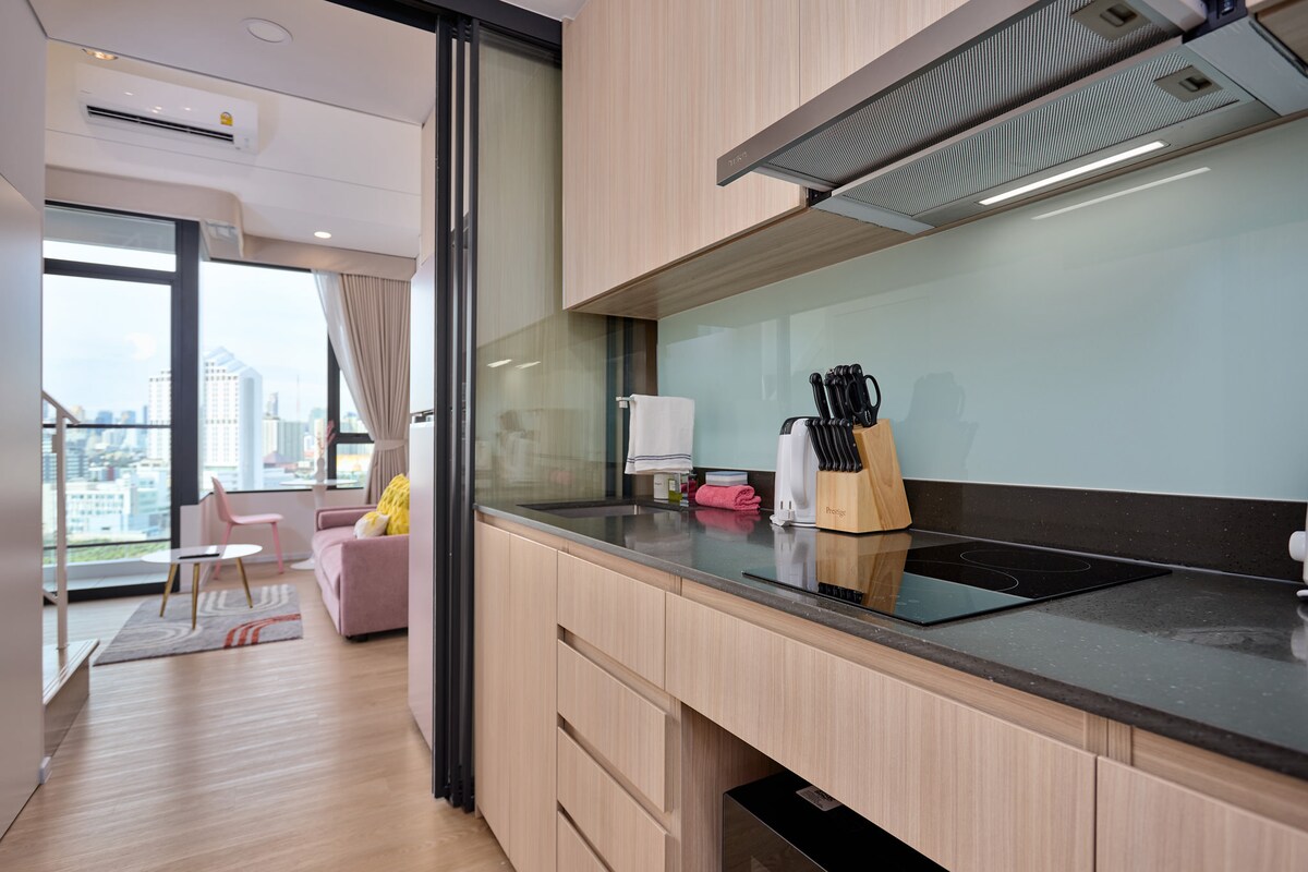 YINDEE OTAĞI – SAKİNİN MƏRKƏZİNDƏ ŞƏHƏR QONAQLAMASI Uyğunlaşma axtaran səyahətçilər, dost qrupları və ya kiçik ailələr üçün nəzərdə tutulmuş 60m² loft üslublu məkan. 1 queen ölçülü çarpayı və 1 divan-çarpayı təklif edən bu ayrıca, lakin bir-birinə bağlı qonaqlama nadir bir Banqkok yaşayış təcrübəsi təklif edir. Tam imkanlara malik ✔ ayrıca mətbəx ✔ Rahat yemək məkanı kimi açıq hava balkonu ✔ Şəhərin füsunkarlığı ilə müasir komfortu qarışdıran loft üslublu tərtibat Yerli sakin kimi yaşaya və Banqkoku rahatlıqla araşdıra biləcəyiniz Asokenin canlı nüvəsində qalın.