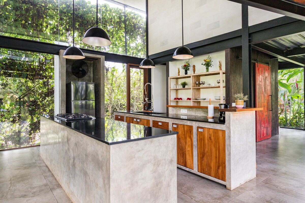 Evdə rustik və sənaye əhval-ruhiyyəsi var. Divar sementin ekspozisiyası görünüşüdür. Evin əksər hissəsindən görünən cəngəllik mənzərələrini təmin etmək üçün dəmir şüşə qapı və pəncərələr. Sərin və köntöy işıqlandırma elementi gözəl quraşdırılıb. Mebel əsasən təkrar emal edilmiş çay ağacından hazırlanıb. Mətbəx, yemək və yaşayış üçün böyük açıq məkan. Gündəlik səhər yeməyi daxildir. Gözəl cəngəllik mənzərəsinə baxan yaxşı ölçülü sonsuz üzgüçülük hovuzu. Bu unikal və sakit cəngəllik tətilində dincəlin.