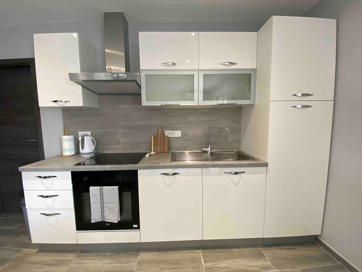 Dənizin yaxınlığında (gözəl çimərlikdən 80 metr məsafədə) , şam meşəsinin yanında gözəl bir yerdə Niko ilə tam təchiz olunmuş mənzil var. Mənzillər tam rahat və sakit bir tətil üçün həqiqətən hər şeyi təklif edir. Mənzil iki nəfərlikdir, üstəgəl biri qonaq otağındakı divanda yerləşir. İkinəfərlik çarpayısı, qonaq otağı, yemək otağı, tam təchiz olunmuş mətbəxi, vanna otağı terrası və pulsuz parkinq yeri olan bir yataq otağından ibarət müasir mebellər. Bütöv səthi 34m2 mənzil.