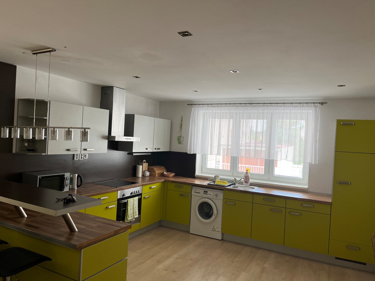 This modern, spacious apartment is located in the center of Piešťany. It is fully furnished, suitable for 3 people. The bedroom has a king double bed and a wardrobe. The kitchen is fully equipped with, among other things, a coffee machine, a dishwasher, a microwave and a kettle. The apartment includes a bathroom with a shower and a washing machine, a living room with a sofa, TV, dining table and also the balcony. Shops, restaurants, cafes, post office, shopping center Aupark are nearby.