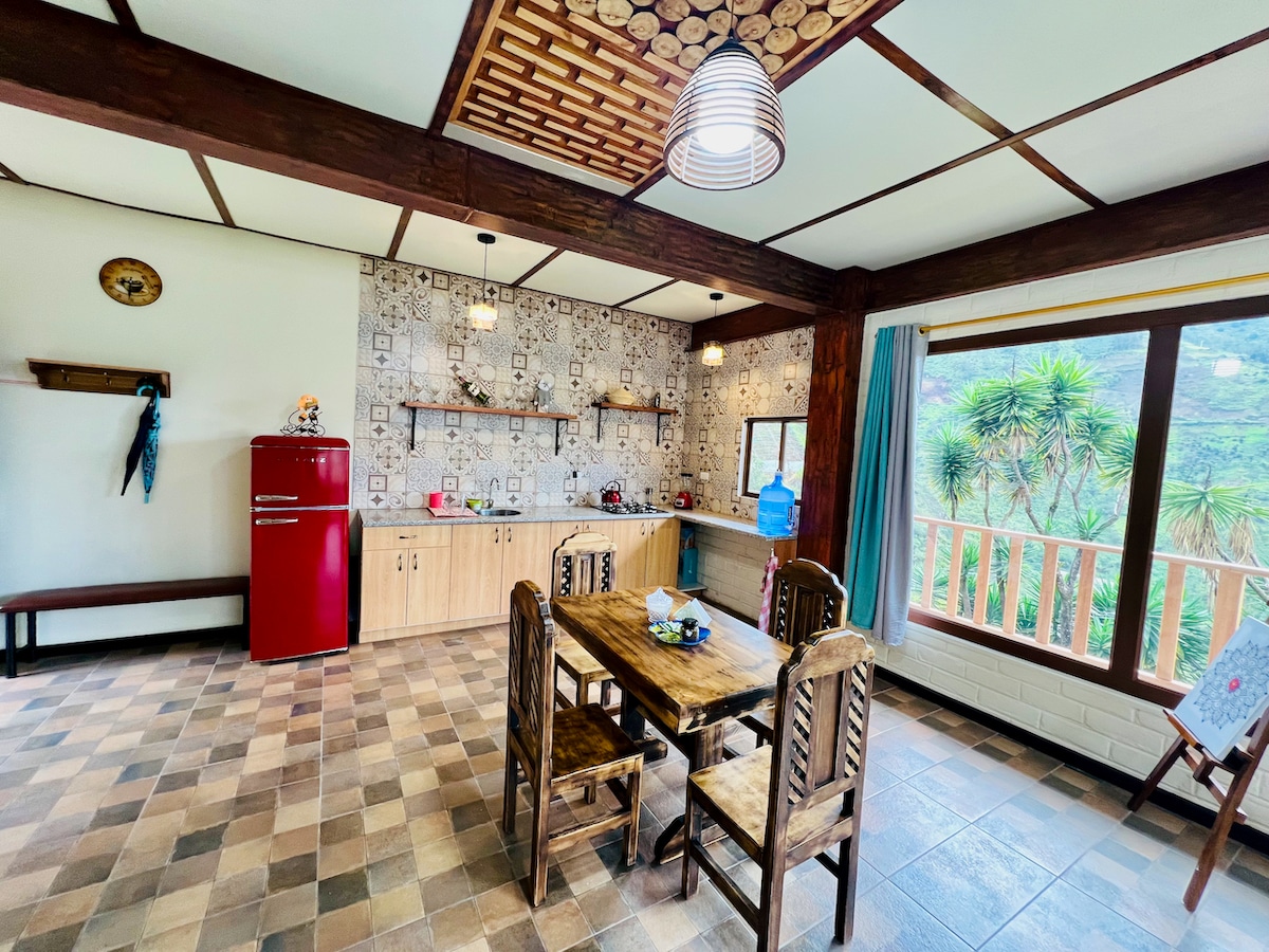 Disfruta de una suite abierta y luminosa con una vista inigualable a la vegetación de Baños. Equipada con una cómoda cama de 2.5 plazas, sofá cama, cocina, comedor, baño privado y una pequeña sala para relajarte. Ideal para parejas, familias pequeñas o viajeros que buscan confort y naturaleza en un solo lugar. ¡Ubicación privilegiada y ambiente acogedor!