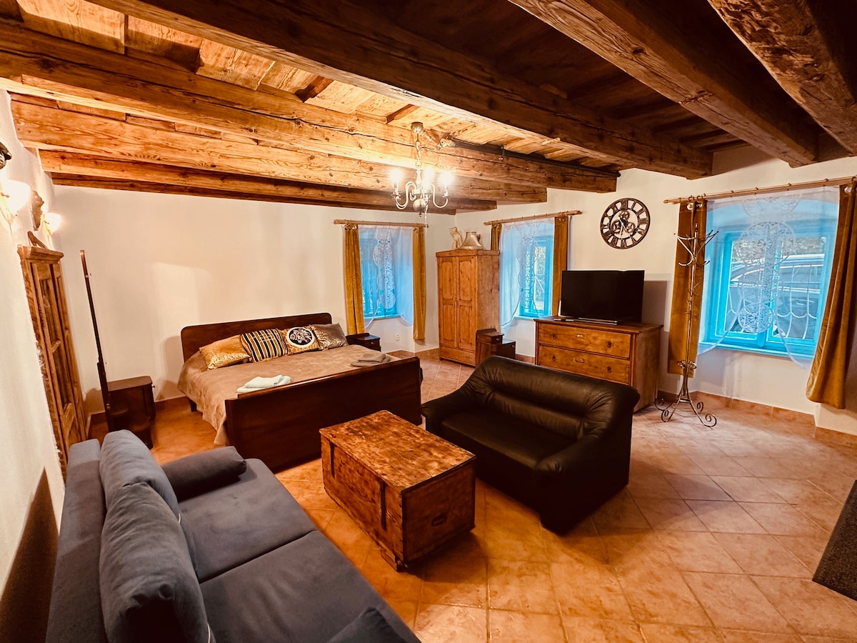 B. Ştyavnitsa yaxınlığında iki mərtəbəli daş ev. Tam təchiz olunmuş mətbəx, 3 yataq otağı, buxarı, tualet, duş, WiFi, açıq tualet/paltaryuyan otaq, bir neçə qızla böyük köşk, HotTub jakuzi, dartma... YENİLİK: Yay kinoteatrı (daha çox məlumat üçün fotoya baxın) Ərzaq mağazası 3 dəqiqəlik piyada məsafədə, kənddə 2 ən böyük göl var (yayda üzmək üçün idealdır), xizək kurortu avtomobillə 20 dəqiqəlik məsafədədir. İstirahət və rekreasiya üçün əla yer, kənddən birbaşa gəzinti və ya alternativ olaraq B. Ştyavnitsanı ziyarət etmək