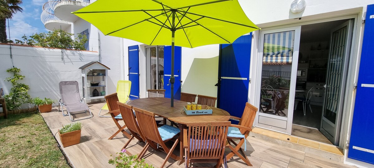 Profitez d'un séjour agréable dans ce studio cosy de 24m2. Plage du Midi. Il comprend: un coin cuisine, un salon, une chambre (lit double) une douche à l'italienne, des toilettes, un jardin et un toit terrasse, vue sur la mer. A environ 5 minutes à pied de la mer. Vous pourrez vous rendre en voiture, vélo ou à pied sur la route du Gois célèbre pour ses marées, l'embarcadère pour l'île d'Yeu, vous promener dans la forêt et au polder de Sébastopol. Non accessible aux personnes à mobilité réduite