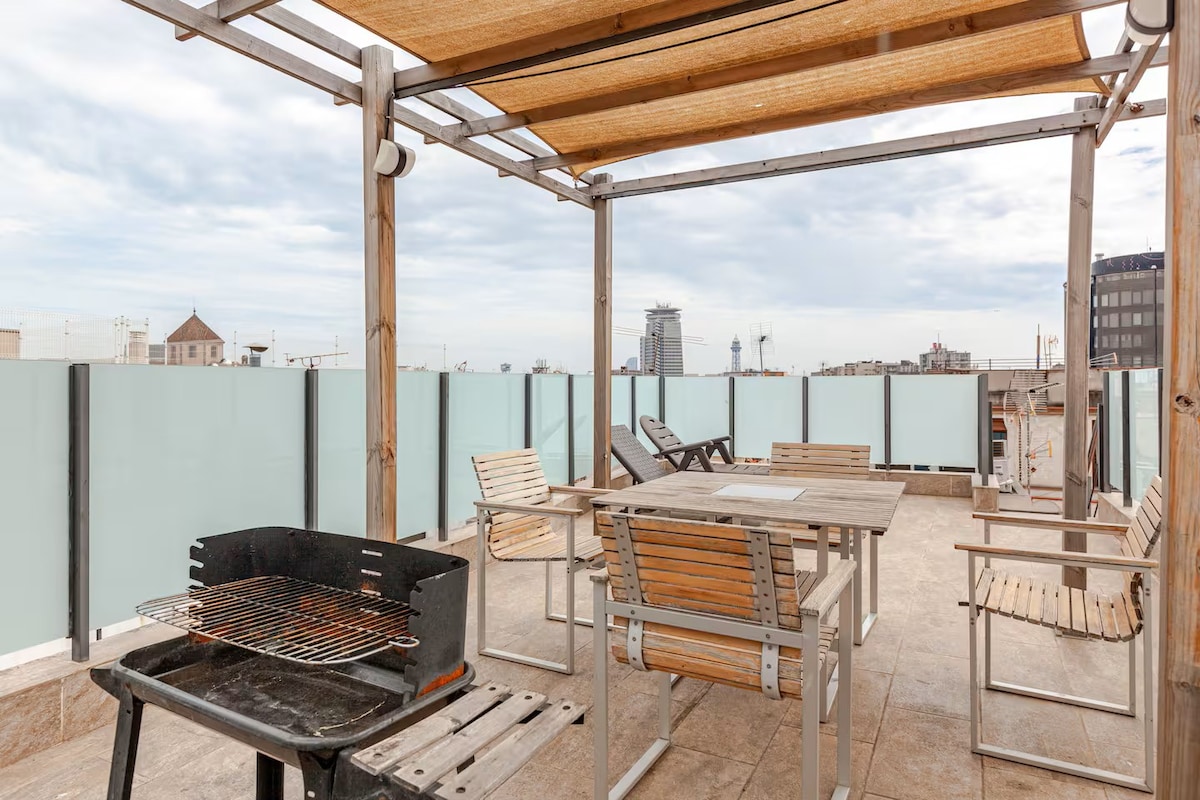 Cakuzi və Barselonanın 360 dərəcə mənzərəsi olan şəxsi damüstü terras