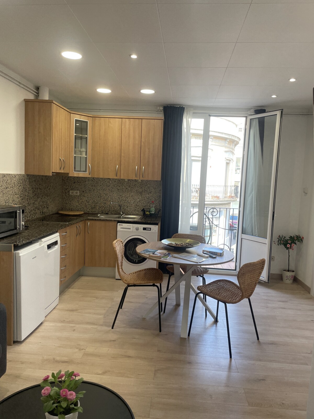 Totally renovated, a cosy apartment with a terrace and balcony, situated in a quaint old house, in a quiet residential area of Sants. Modern decoration and furniture. The original wooden beams have been kept to give it warmth and character.