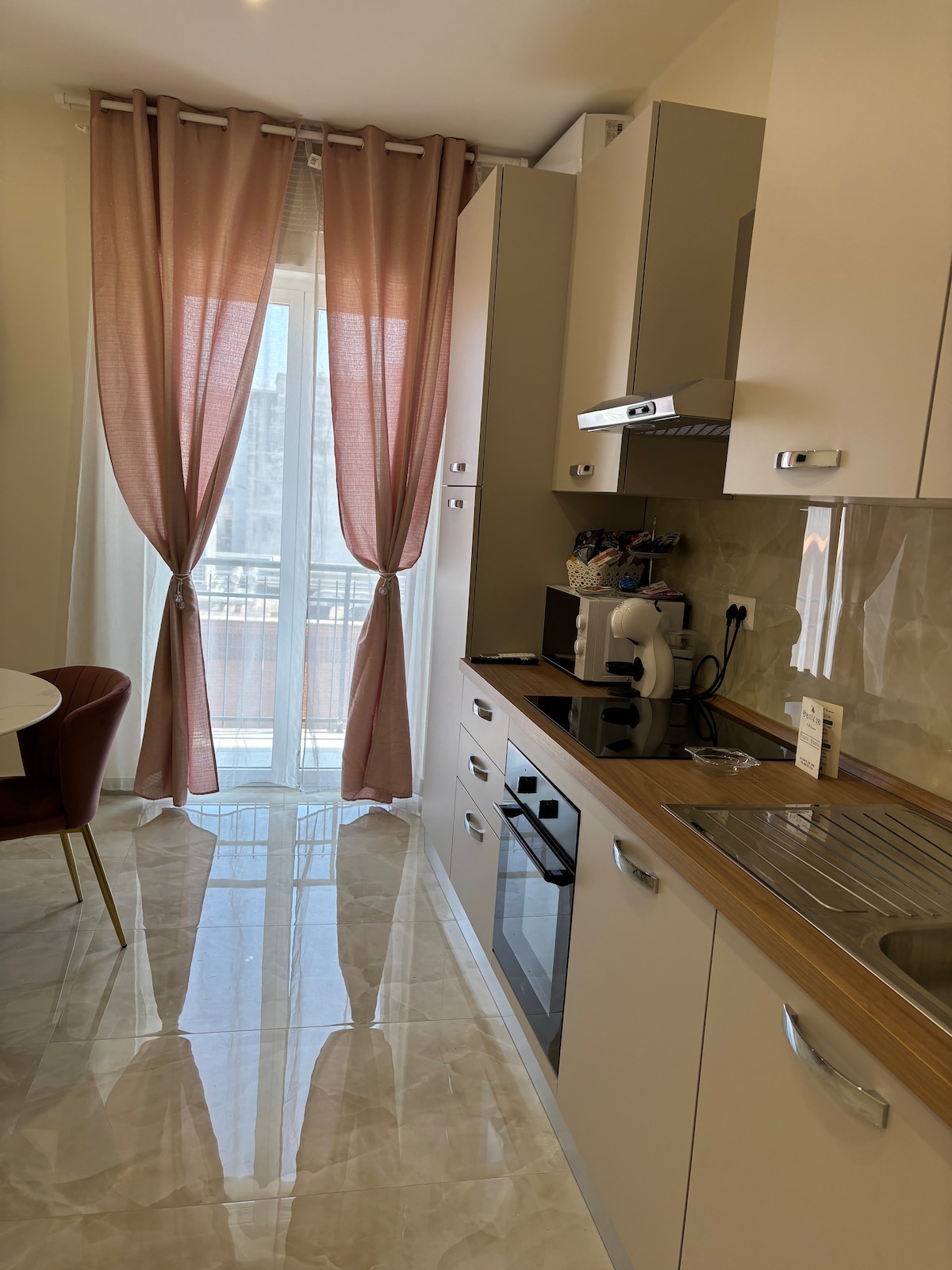 Şəhərin mərkəzində əsrlik binanın ikinci mərtəbəsindəki dəbli yeni təmirdən çıxmış mənzilimiz qonaqlara tarixi italyan memarlığının füsunkarlığı ilə birlikdə müasir avadanlıqların tam çeşidini təklif edir. Mənzildə yan dəniz mənzərəli balkon, hər otaqda kondisioner, iş yeri, mətbəx (mikrodalğalı soba və nespresso qəhvə maşını ilə) və duş və teknikası olan hamam otağı var. Camaşırxana xidməti və gec giriş qonaqlarımız üçün pulsuz mövcuddur.