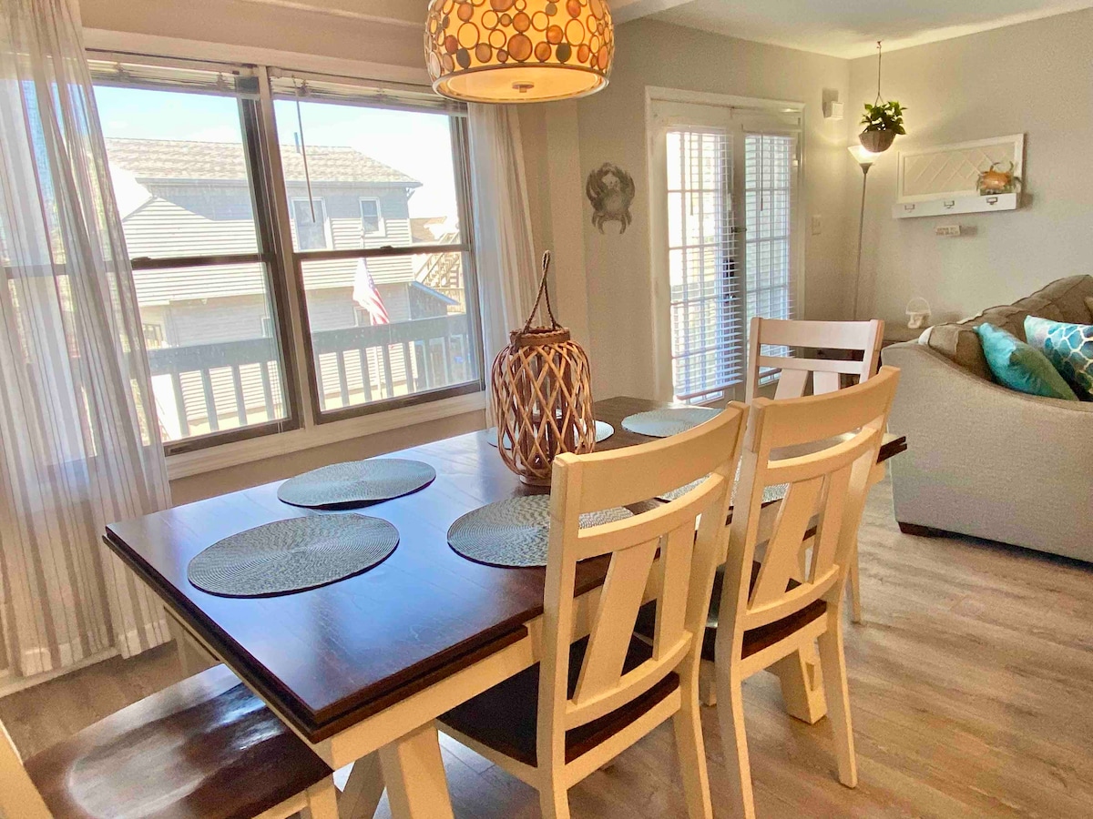 Okeana doğru ADDIMLAR! YENİ 3 BR 2 HAMAM KONDOMİNİUM w/eyvan Taxtadan və çimərlikdən YARIM blok! LİSENZİYA№975 1 aprel - 30 İYUN tarixlərində icarəyə götürmək üçün 25+ olmalıdır Hər gecə saat 22:30 -DAN sonra çöldə asılı qalan BÜTÜN və ya hətta yüksək səsli qonaq qruplarında şənliklərə icazə verilmir. #4 nömrəli yerdə YALNIZ 1 AVTOMOBİL üçün PULSUZ parkinq, yeni düz ekranlı televizorlar w/kabeli, tam təchiz olunmuş mətbəx, camaşırxana otağı, 2-ci/3-cü BR = 2 əkiz çarpayıda əsas BR w/ queen və ayrıca hamam/kraliça 2-Cİ hamam-tualet/duş və vanna 4 çimərlik nişanı daxildir. + uşaqlar pulsuzdur!