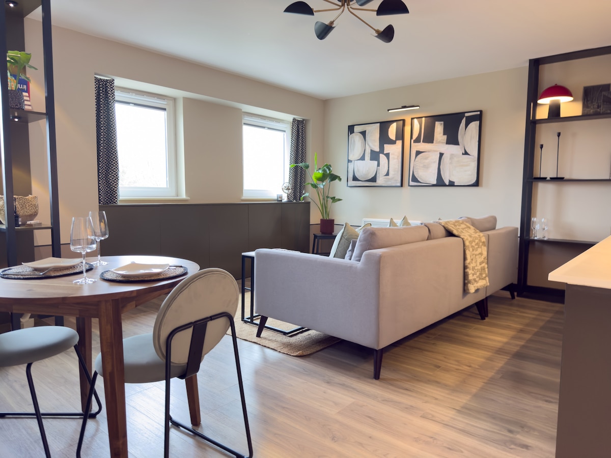 Qlouçesterin mərkəzində müasir mənzil! Həm rahatlıq, həm də araşdırma üçün mükəmməl bir yerdir. Seçilən cəhətlər: -1 Pulsuz Ayrılmış Parkinq Məkanı: Parkinqlə bağlı narahat olmağa ehtiyac yoxdur! - Reqbi Fanatları üçün endirim: Qlouçester Reqbi Stadionuna yaxın. -Tarixi görməli yerlər: Valehedici Qlouçester Kafedralına daxil olun. -Shop Till You Drop: qısa sürmə və ya Quays Alış-Veriş Çıxışından 30 dəqiqəlik məsafədə. - Sənədləri kəşf edin: Bir sıra bar və restoranları olan canlı Gloucester Docks sahəsindən zövq alın
