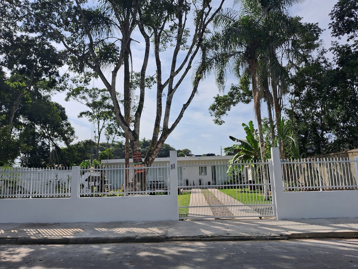 Loft para 4 pessoas * AR CONDICIONADO * PISCINA EXCLUSIVA DO HOSPEDE * Cozinha Completa * Smart 50P * 2 varandas * Estacione sem custo área coberta * Churrasqueira * Fogão a lenha * Duas camas de casal. ( 1 no mezanino e outra na Sala ) * fogueira externa com varal de luz * PETS: NÃO COBRAMOS TAXA SE ELE NÃO FOR NA PISCINA! * lavanderia. Campinho de vôlei 2 bikes ( Avise antes) * 3 km da praia de Itajuba * 1 km da BR 101 -BR que beira litoral catarinense