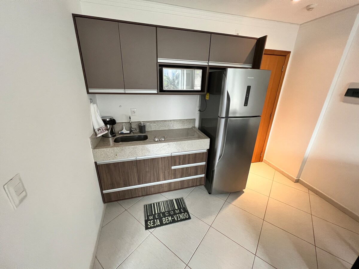 Parque do Peão de Barretos-da, Condomínio Barretos Park Hotel-də mənzil - Kondisioner - 1 nəfərlik çarpayı (2 nəfərlik çarpayıya bölünə bilər) 1 Divan-çarpayı - Qonaqlar üçün yataq dəstləri və hamamlar - Saç feni - Minibar - Mikrodalğalı soba - Qab-qacaq, eynək və yastı qablar