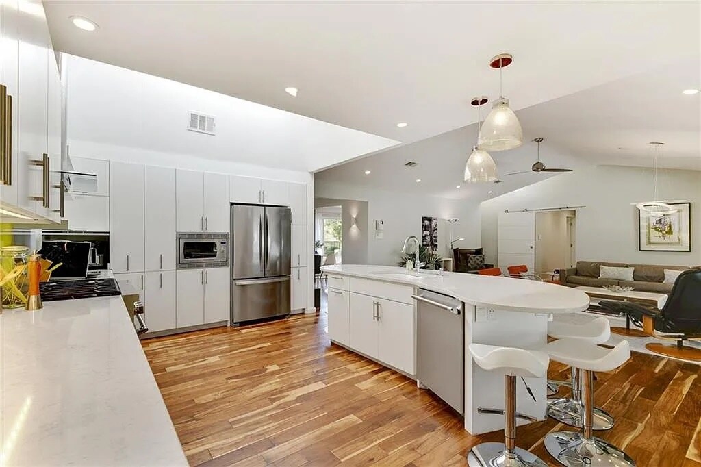 Stylish Mid-Century Modern Hill Country home on nearly an acre, in Austin just outside Dripping Springs. Sleeps 8 with high ceilings, fully stocked kitchen, and comfy bedrooms. Relax on the deck, screened porch, or yard after exploring Austin, Bee Cave, Lake Travis, Lake Austin, wineries, wedding venues, and Barton Creek golf. Perfect for groups, families, or wedding guests seeking a peaceful Hill Country retreat with easy city access.