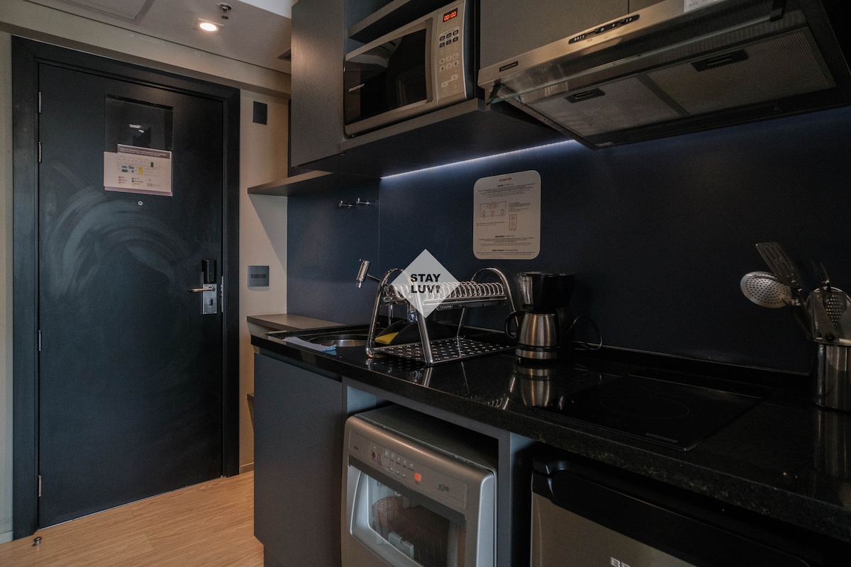 Alfavilldə layiq olduğunuz qonaqpərvərliklə qarşılanın və şəhərin rahatlığını yaşayın! Bu kateqoriyadakı hər studiyanın öz dekorativ kuratorluğu var - şəkil və ya rəng dəyişir - lakin həmişə eyni qüsursuz konfiqurasiya təmin edilir: super yumşaq çarpayı, split kondisioner, induksiya ilə tam təchiz olunmuş mətbəx və cazibədar eyvan. Mövqe: Alış-veriş Mərkəzindən, restoranlardan və bazarlardan bir neçə addımlıq məsafədə. Binada restoran, camaşırxana və kiçik market mövcuddur.