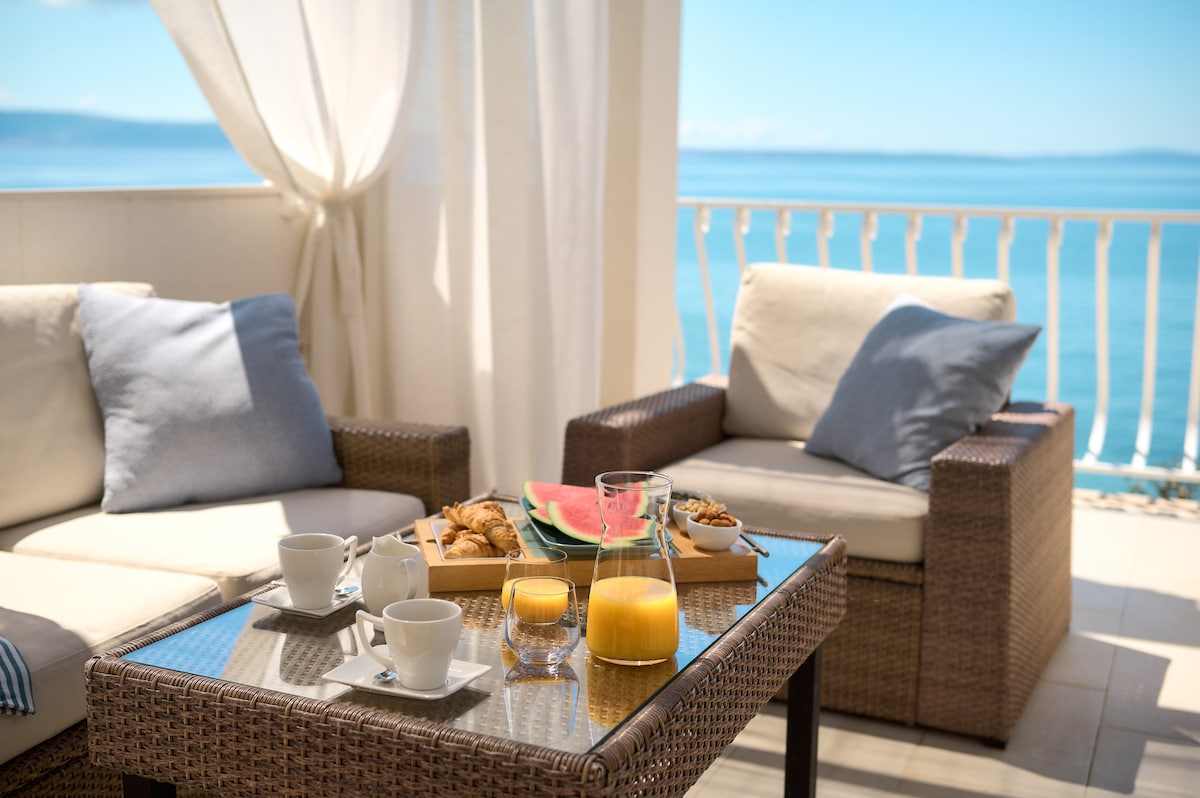 - Açıq havada oturma yerləri olan icarələr Baška Voda Plajları