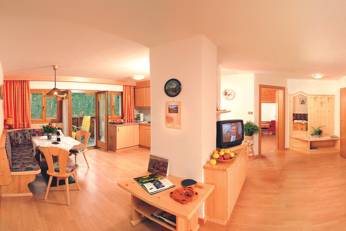 Meranonun tarixi mərkəzinin mərkəzində müstəqil istilik sistemi olan rahat və sakit müstəqil ikiotaqlı mənzil, Duomo, gəzintilər, Hamamlar və Milad Bazarı. 1100-cü illərin tarixi binasında yerləşən bu bina Meranese Portici üçün səciyyəvi olan böyük daxili həyətə baxır. Mətbəx tam təchiz olunub və işləkdir. Yaxınlıqda supermarket və mərkəzdəki bir çox restoran və kafelər, eləcə də məşhur Forst Pivə Zavodu var. Sizi səbirsizliklə gözləyirik