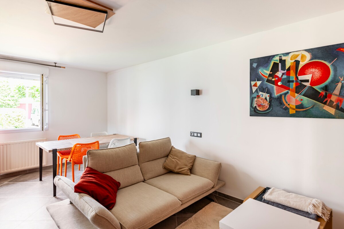 ✔️ Zəhmət olmasa, mənimlə "Məlumat" bölməsi və ya qeyd/foto vasitəsilə əlaqə saxlayın. 🙂 Ayrıca terras və hovuzu olan rahat, işıqlı və sakit müstəqil qonaqlama yeri. Çimərliklərdən və Biarrits və Anqlet şəhərlərindən 5 dəqiqəlik məsafədə yerləşir. Biarritz qapılarında, unlu məmulatlar mağazası, supermarket, 2 restoran və Biarritz və Bayonne-a çox asanlıqla çatmağınız üçün Trambus dayanacaqları olan cazibədar, tipik və mərkəzi bir məhəllədə. 2 velosipedin kredit imkanı