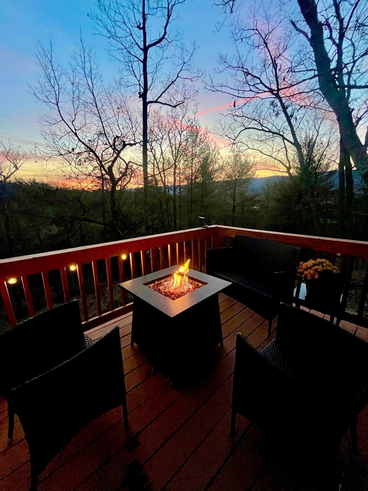 Enjoy a cup of coffee on the deck tucked in the mountain foliage, evenings spent enjoying the fire pit, while grilling dinner or relaxing in the hot tub. Inside has a gas fireplace w/ smart TVs or play in the game room! This is a newly modeled home with a fenced yard for potty trained dogs, with a pet fee! We are inside Massanutten resort gates, offering skiing, sledding, adventure park, go carts, golfing, horseback riding, indoor water park, mountain side restaurants!way, FREE POOL excess!