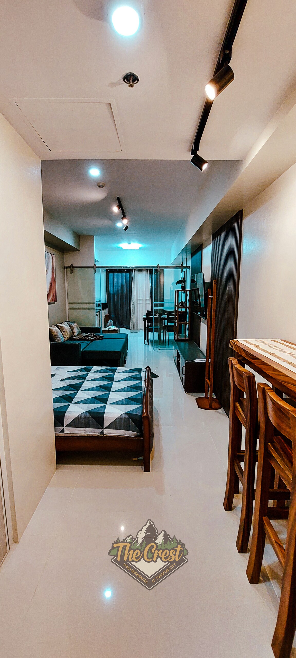 The Crest at Wind Residences Tagaytay (Taal lake/highway view) Features: 55" Smart TV (with dedicated Netflix Account) WiFi (30-50Mbps) Microwave Mini-ref (double door) Electric Kettle Samsung Split-type AC Movable Clothes rack and hangers Bathroom with water heater and bidet. Free personal soap and toothbrush Towel use (2 pcs per booking only) Sleeping Arrangements: Double-Size Bed (for 2 pax) Large Sofa Bed (for 2 pax)