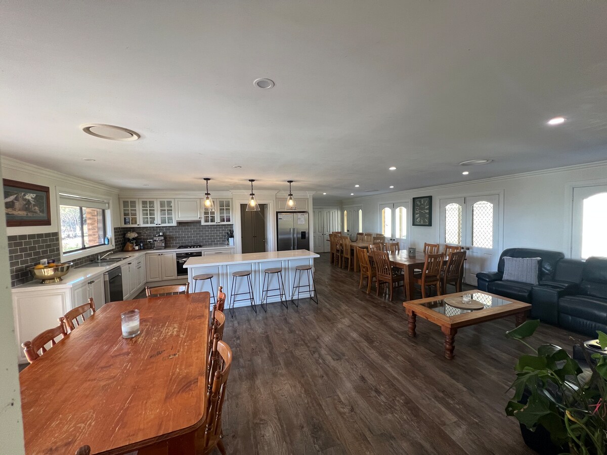 This is a generous 6 bedroom home with two living areas and three bathrooms. There is plenty of space inside and out, set on 25 acres. We can sleep up to 22 people on request. There is a heated pool and tennis court, pool table, ping pong table (in garage), toys for the kids. We have TV, a fire place indoor and a fire pit outside and a large BBQ. There is ducted heating & cooling all year round. We have chickens you can feed and the Kangaroos, Sheep and Cows are never far away.