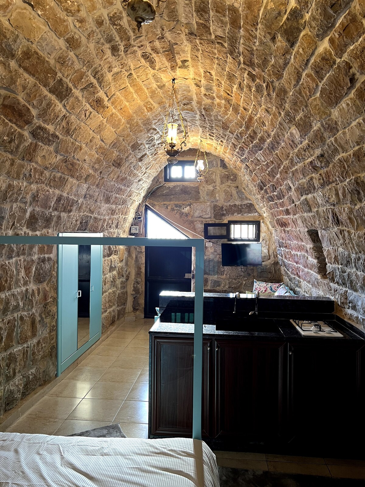 Batrunun canlı Köhnə Bazarlarının mərkəzində, şəxsi qapalı cakuzisi olan bu lüks dizayner süitada qonaqlayın. Kafelər, restoranlar, gecə həyatı və tarixi küçələrlə əhatə olunmuş bu məkanda hər şey piyada məsafəsindədir. Məkan orijinal Livan daş memarlığı ilə müasir rahatlığı özündə birləşdirir və dəbdəbəli, dincəlmək üçün mükəmməl bir tətil təklif edir: iki nəfərlik böyük çarpayı, rahat istirahət guşəsi, ağıllı televizor, Wi-Fi, kondisioner və qismən təchiz olunmuş kiçik mətbəx.
