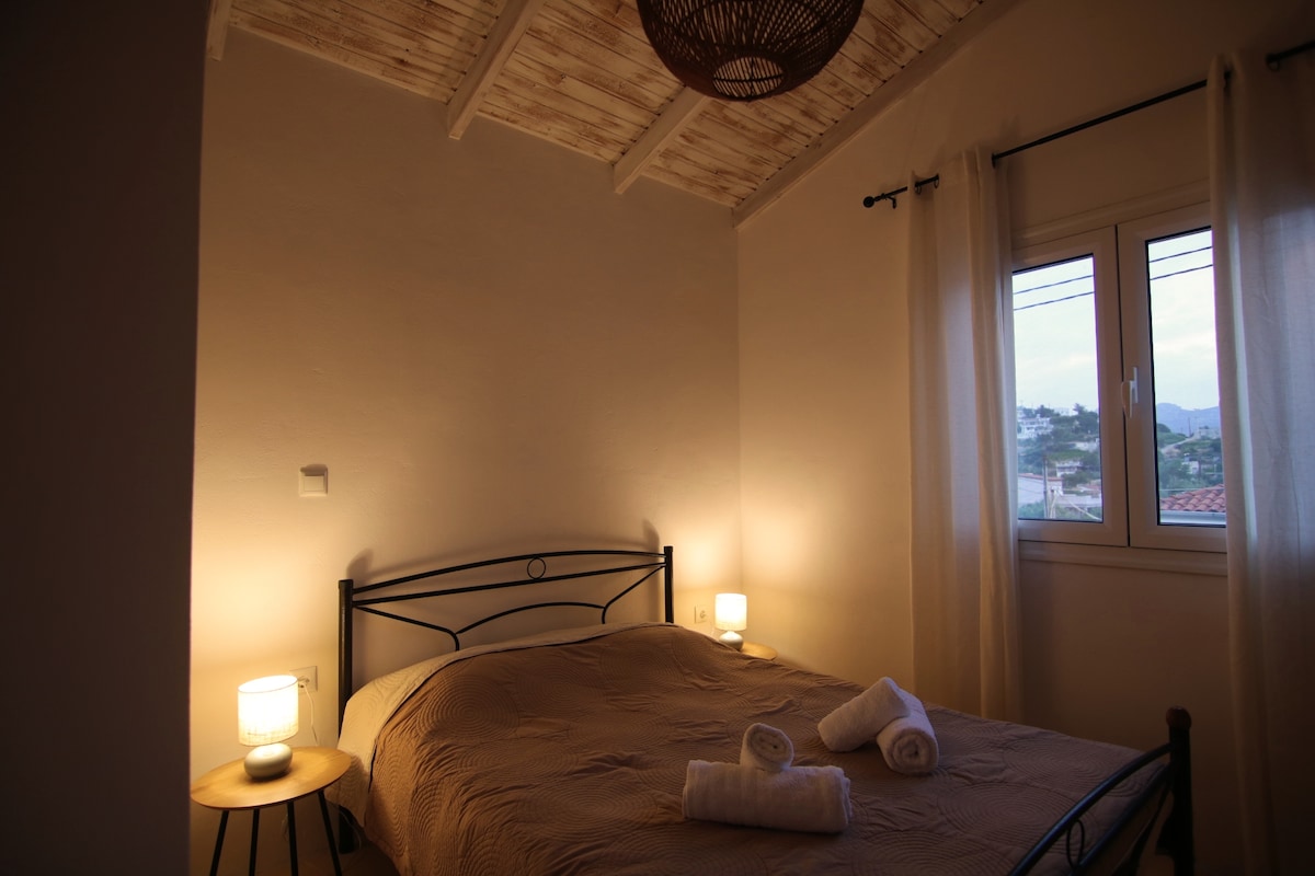 Αφήστε πίσω κάθε έγνοια με αυτόν τον ευρύχωρο και γαλήνιο χώρο. Με ένα διπλό κρεβάτι και ένα καναπέ που γίνεται κρεβάτι σε ξεχωριστά δωμάτια χωρισμένα με μια παραδοσιακή συρόμενη ανάγλυφη πόρτα. Η κουζίνα είναι ευρύχωρη καθώς και το μπάνιο διαθέτει ο, τι χρειάζεστε. Με εξαιρετική θέα από διαφορετικά σημεία καθώς και πολύ μεγάλη αυλή με κτιστό παγκάκι στο ήσυχο περιβάλλον πίσω από το σπίτι. Η παραλία απέχει μόλις 10 λεπτά με τα πόδια και το κοντινότερο supermarket μόλις 7 λεπτά με το αυτοκίνητο.