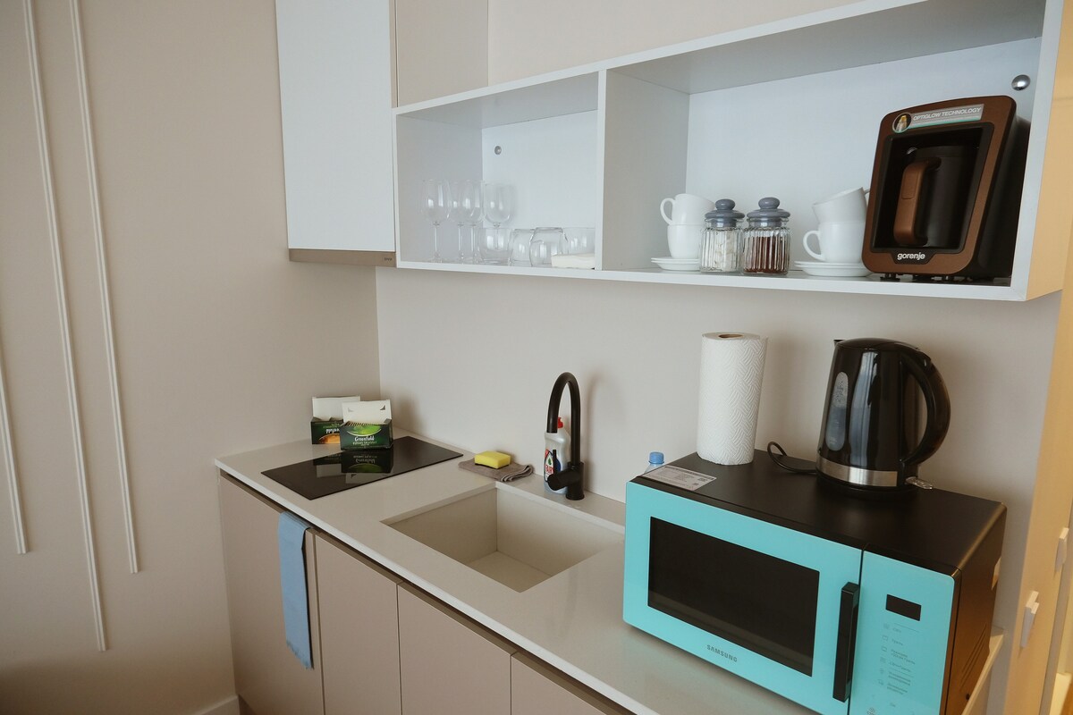 Batumidə tam yeni, müasir mənzil. Tam yeni, müasir mənzilimizə xoş gəlmisiniz. Mənzil mebellə təchiz edilib və tam təchizatı var. Burada rahat çarpayısı olan rahat yataq otağı, dincəlmək üçün qonaq sahəsi, tam təchizatı olan mətbəx və müasir vanna otağı var. Quruducusu olan paltaryuyan maşın, qabyuyan maşın, qəhvə maşını, soba, plitə, dondurucusu olan soyuducu, ağıllı TV, Wi-Fi, kondisioner Bütün imkanlar tamamilə yeni və xüsusi olaraq seçilib. Tam yeni mənzilin rahatlığından zövq alın və ilk qonaqlarımızdan biri olun.