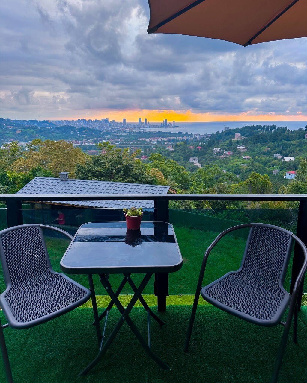 Nestled in a tranquil, naturally beautiful setting, it offers breathtaking views of Batumi and the Black Sea. Additional services offered: • Chiller for ultimate relaxation • Delivery service by our own courier • Professional designer to style your event table any way you like Ideal for weekend escapes with friends, birthday parties, or any special occasion. Everything is ready to make your stay truly memorable!