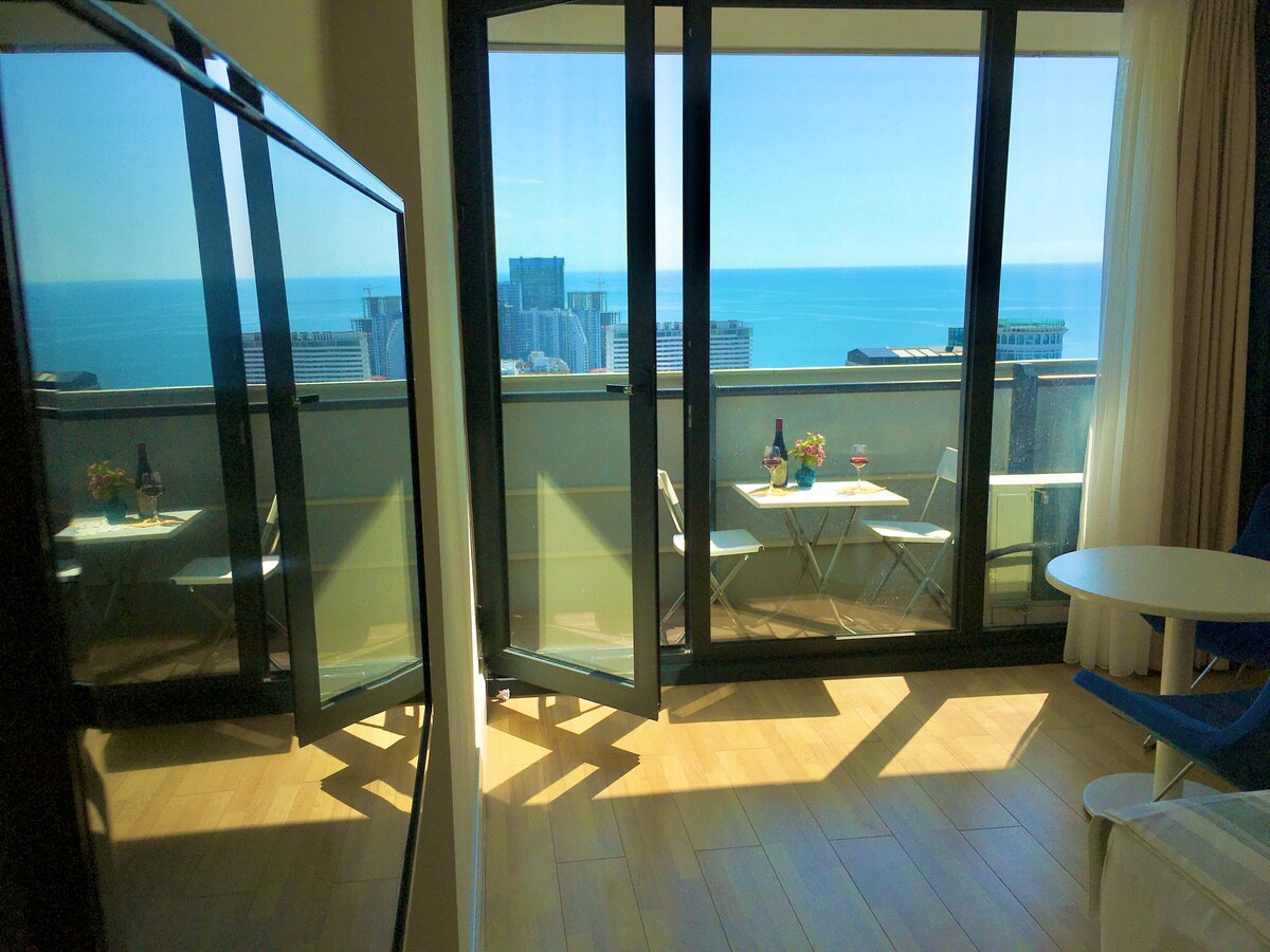 Dənizkənarı dəbdəbəli mənzil. w/ Nəhəng Balkon, 2 Yataq otağı