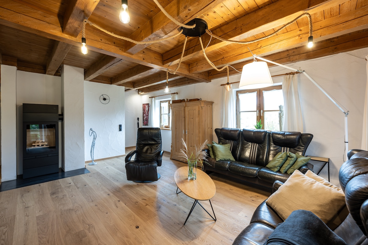 Schlafen, wo einst Sterne leuchteten. Ein denkmalgeschütztes Bauernhaus von 1650. Das Bauernchalet im Elbacher Gütel. Ruhig gelegen nahe dem Starnberger See. Neu interpretiert als Design-Ferienhaus. Über 175 m² Raum für Zeit miteinander. Ruhig. Offen. Beständig. Für bis zu 10 Personen. Zwei Kaminstuben. Wohnküche mit großem Tisch. Drei Schlafzimmer. Sauna. Garten und Outdoor-Lounge. Ein Ort zum Ankommen. Zum Abschalten. Für Familien. Für Freundeskreise. Für gemeinsame Auszeiten.