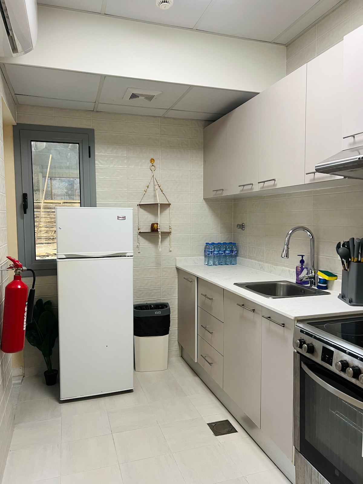 Bu rahat mənzil Buçer ərazisində Əl Ameen Məscidi və Amman Mall yaxınlığında tamamilə yeni binada yerləşir Bina yenidir və ağıllı giriş sistemi, şəxsi parkinq və gimnaziya kimi bütün imkanlar və təhlükəsizliklə təchiz olunub Theapartment da rahat konfiqurasiya edilib Yataq otağı və əlavə soyuducu, tam mətbəx və iki su kursu kimi yararlı stulu olan salondan ibarətdir.