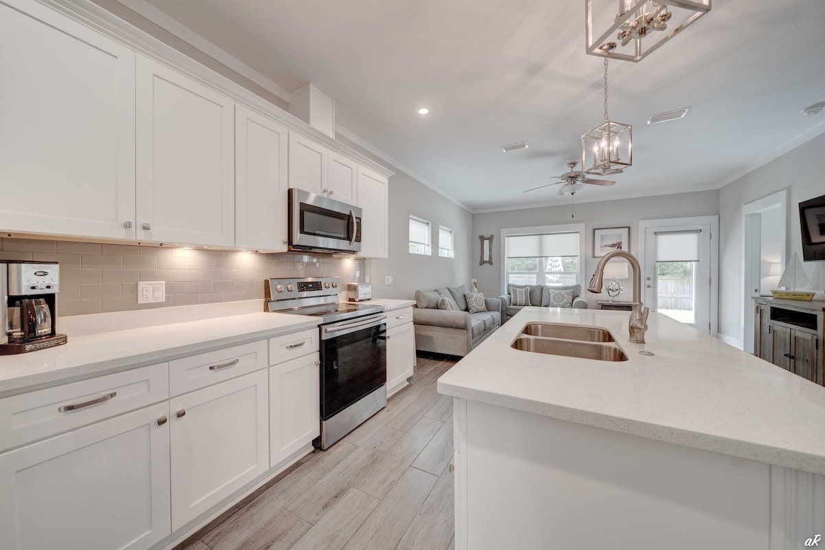 6 qonaq üçün mükəmməl olan sakit İnlet-Biç evimizə gəlin! Bu şəxsi istirahət yerində qapalı buxarı, pinq-ponq masası, barbekü imkanı olan hasarlı arxa həyət və tam təchiz olunmuş mətbəx var. Uzaqdan işləmək üçün yüksək sürətli Wi-Fi-dan və Körfəz Sahilinin ağ qumlu çimərliklərinə və 30A mağazalarına asan giriş imkanından yararlanın. Ailəvi istirahət üçün mükəmməl məkan sizi gözləyir. Sahildən bir neçə dəqiqəlik məsafədə, lakin izdihamdan uzaq, sakit bir yerdə.