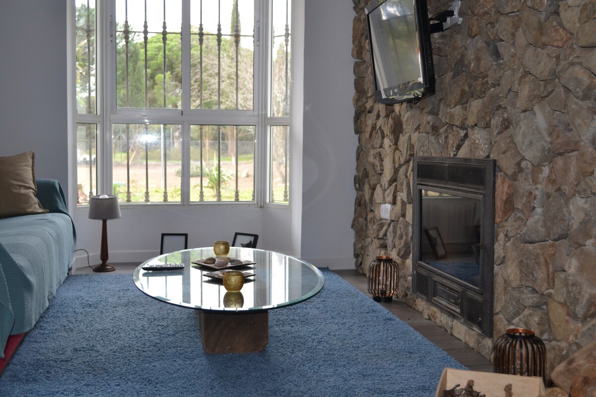 Es una casita rural de 40 m² en una parcela de 500 m² con 17 pinos piñoneros que dan la sensación de estar en un bosque privado. Está decorada con mucho cuidado y mimo. Es un lugar tranquilo, pero muy cercano a supermercados, restaurantes y zonas de ocio de Chiclana. La casa está a 3.5 km de la playa de la Barrosa, Santi Petri y El Novo. Barbacoa y zona de juego para niñas/os.