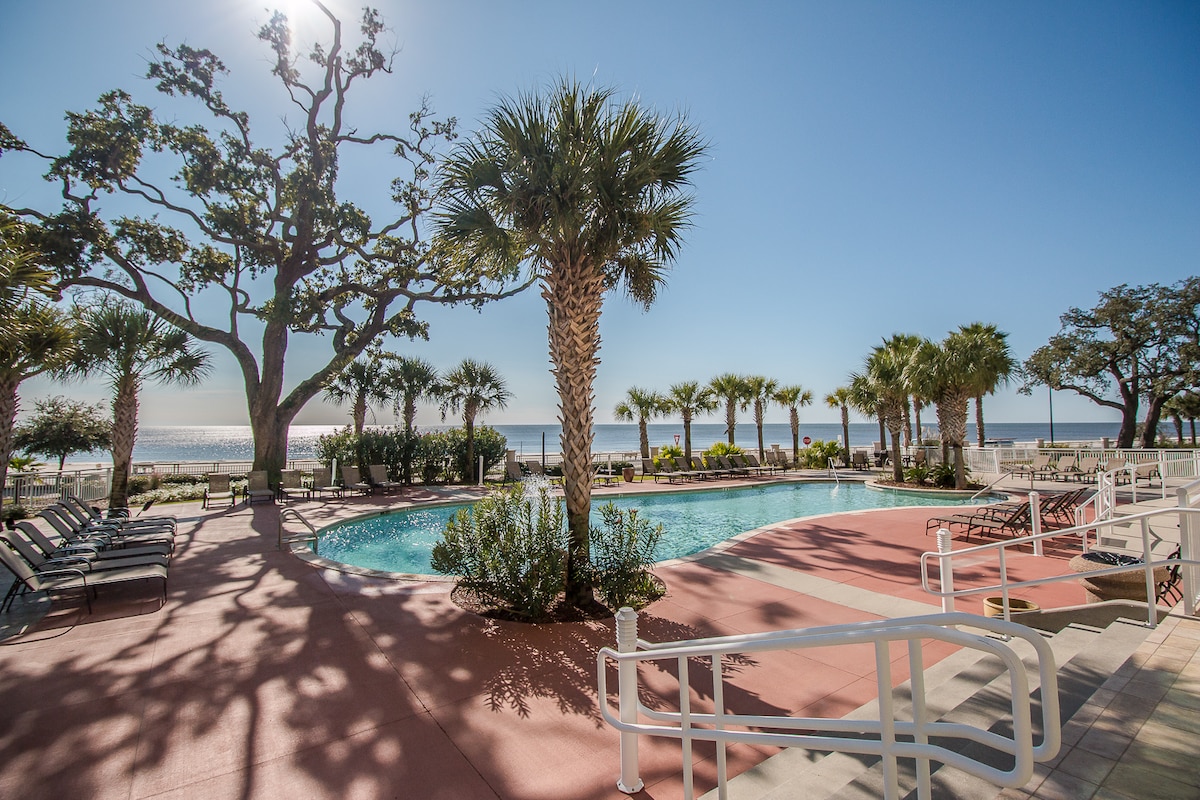 Wake up to beach views every morning! Renovated 2BR/2BA corner unit (307) – between Gulfport & Biloxi. 5-min to casinos & aquarium. ★ Huge private balcony + master with ocean views ★ King master (en-suite), full bed + pull-out sofa (sleeps 6)★ Smart TVs, Wi-Fi, in-unit W/D ★ Resort pool, hot tub, gym, BBQs, private parking. Owner-managed (we live nearby & respond quickly – 4.99★ reviews!). Real photos, real hospitality. Perfect weekend or month-long escape!
