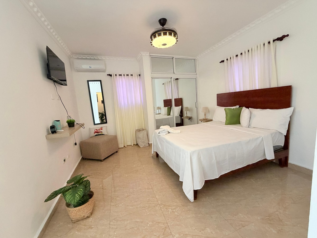 Bu müasir üslublu məkan qonaqlamanız üçün mükəmməl yerdir. Qonaqlamanızı unikal bir təcrübəyə çevirmək üçün axtardığınız bütün komfortlara malik rahat və təchiz olunmuş Aparta studiyası. Obyektlərimizdə sizin üçün təchiz olunmuş və müasir idman zalı ilə yanaşı, böyük terras, ceyran, pikuzzi və barbekü də var. Gözəl bayahibe çimərliyi gəzintisindən cəmi 5 dəqiqə, nəqliyyat vasitəsi ilə isə 2 dəqiqə katamaranla Kataloniya adasına ekskursiyamız var. Yeni layihə.